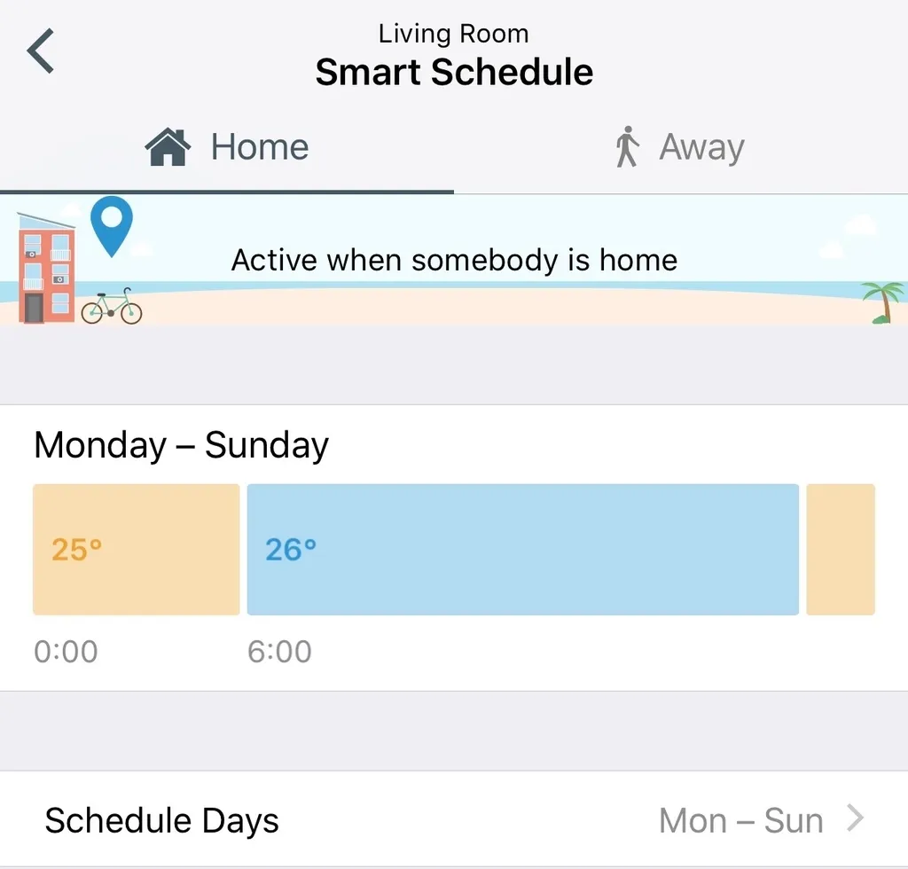 私の場合、不在時はエアコンをオフにし、在室時は26度、寝る時は25度で保つように設定している。これをTadoがエアコンで自動コントロールしてくれている。